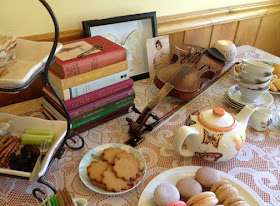 Yesterday I surprised my friend with a Limberlost Tea. We spent a "kindred spirit" afternoon together rehashing favorite parts. I set up a Limberlost table scene. The old violin was my grandfather's, handling it always makes me feel grateful to have had such a grandfather.